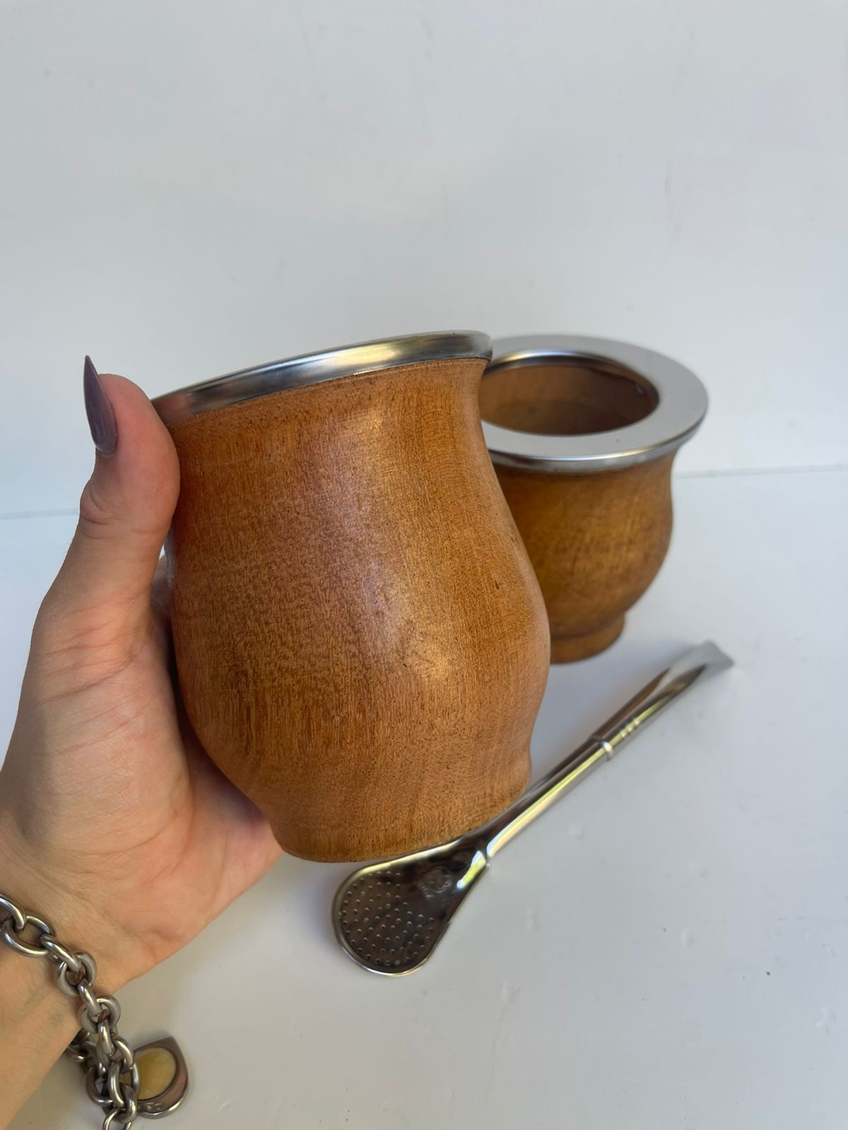 Mate camionero de algarrobo 100% seleccionado con guarda de acero inoxidable.