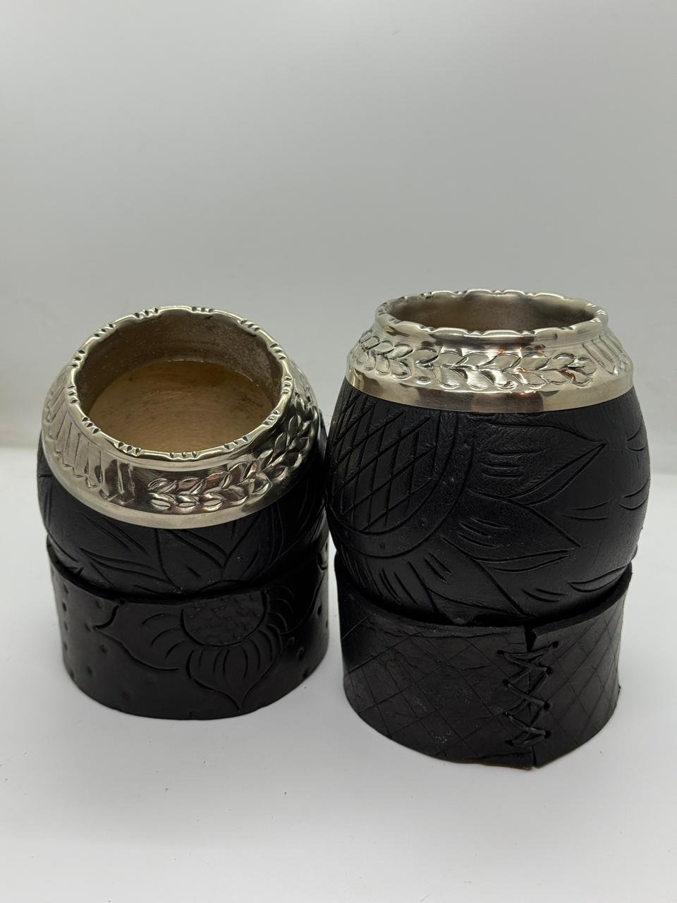 Torpedo criollo base de cuero, con diferentes diseños tallados, color negro con interior calabaza.